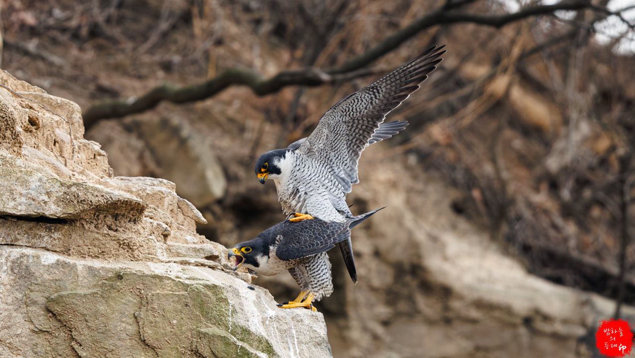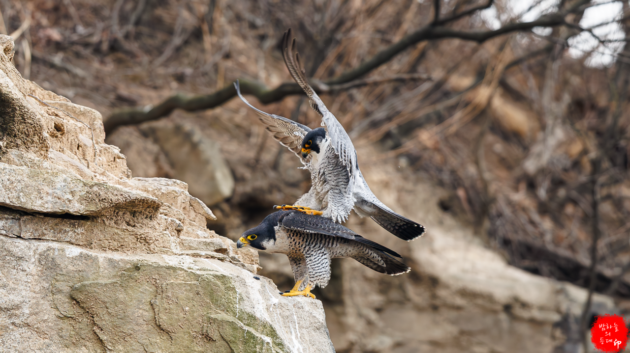 송골매의 짝짓기 현장. 보기 드문 장면을 잡으셨습니다