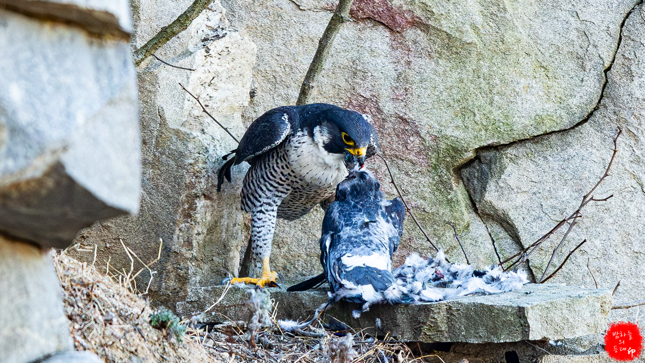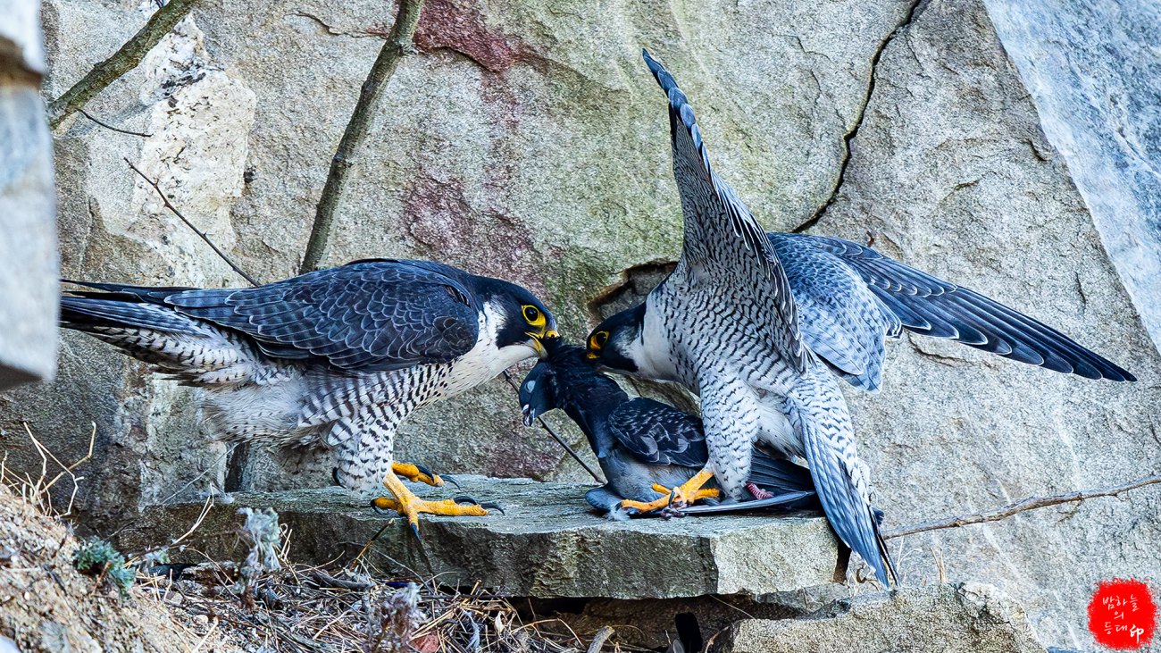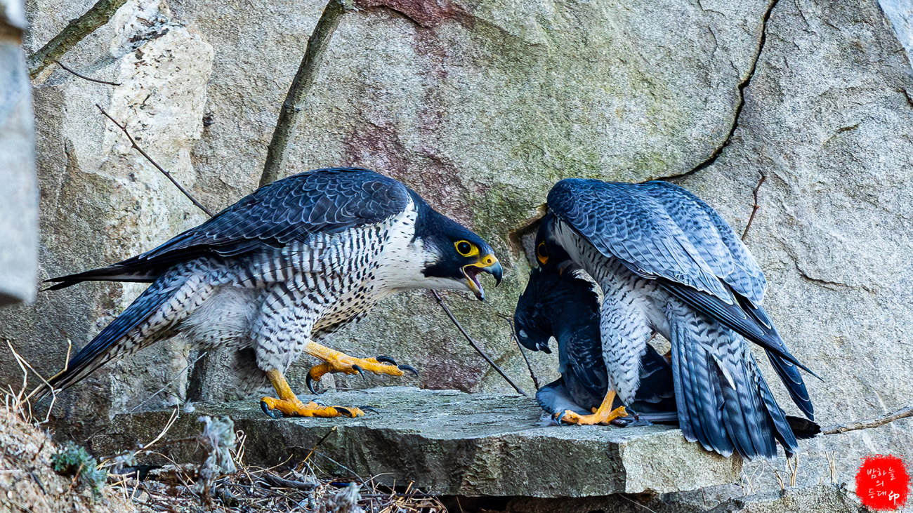 송골매도 짝짓기를 하고, 매년 다니던 수리부엉이도 육추를 하는 모습을 보입니다.