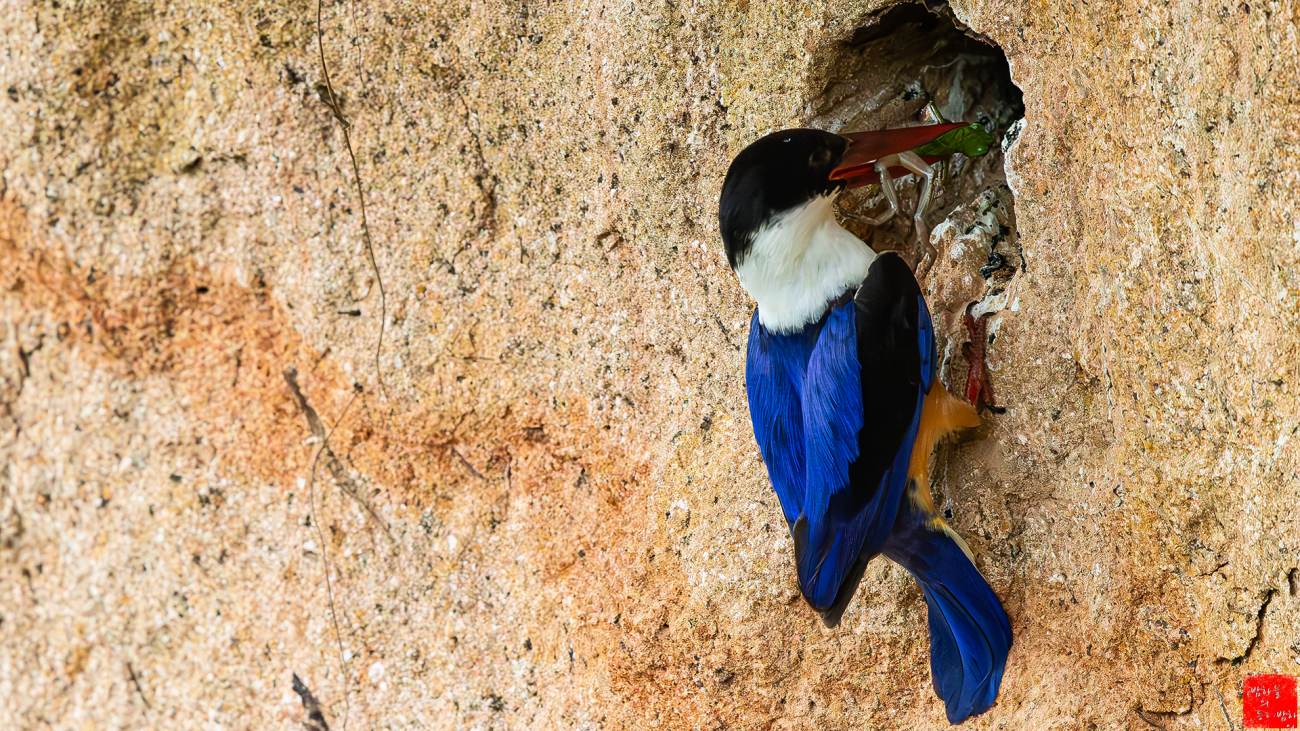둥지 앞에 턴을 하던 청호반새가 그때부터 새끼들에게 먹이를 주고 간다.