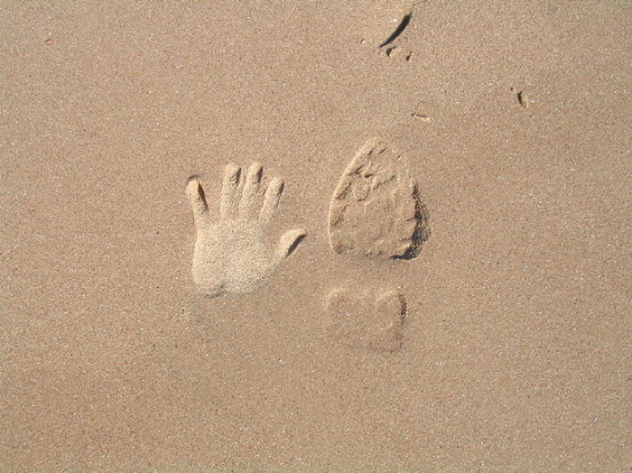 모래밭에 찍어본 손과 발