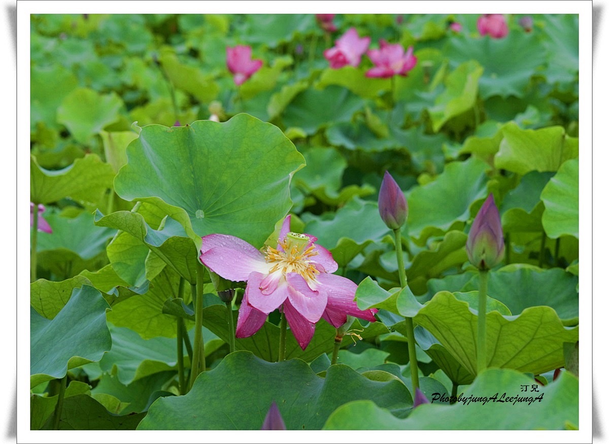 廣闊한蓮밭에 피어있는 蓮꽃을보며,어린時節의 追憶도 連想하고..