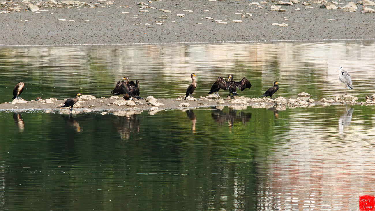 대백로, 저어새,왜가리, 민물가마우지, 장다리물떼새, 흰뺨검둥오리, 백할미새, 물총새,