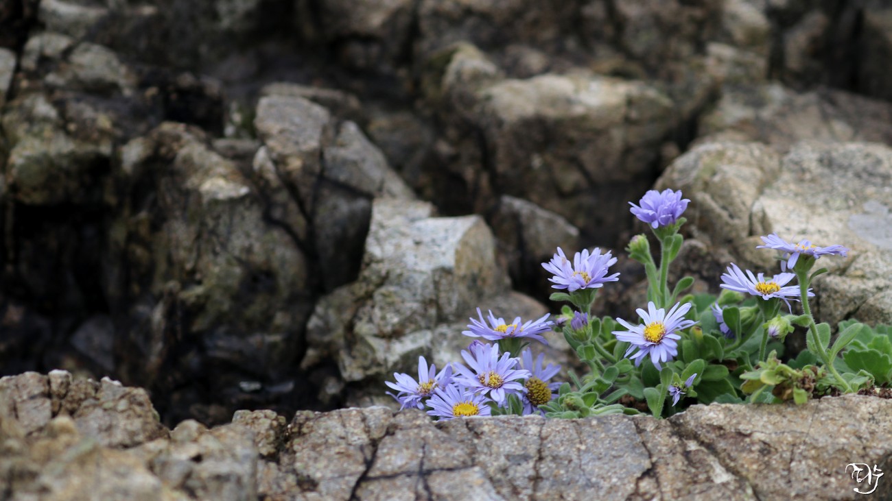 바위틈에서 해풍을 이기며 살아가는 해국들