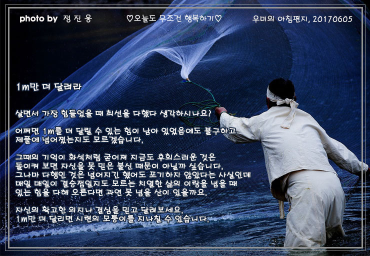 매일 매일이 결승점일지도 모르는 치열한 삶의 이랑을 넘을 때