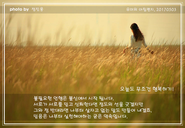 믿음은 나부터 실천해야하는 굳은 약속입니다.