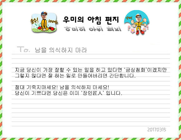 절대 기죽지마세요! 남을 의식하지 마세요!