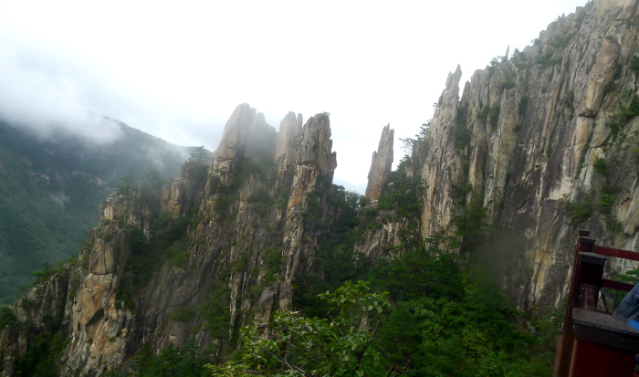 계곡의 경관이 좋기도 했지만, 두타산 양옆으로 암봉과 가파른 석벽이 버티고 있어 접근이