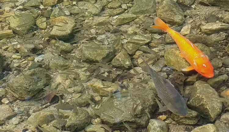 찾아주신 고마운님께 관악산 호수공원 입구에서 반겨주던 요 다홍꽃 한송이 드립니다. 귀하신 걸음걸음에 감사드립니다. 아래 요 잉어는 오늘(7월10일 일요일) 아침산책시 관악산 물놀이장에서 만난 잉어 두마리입니다. 사람이 가까이 가면 도망가던 황금잉어가 먹이를 주었더니 계속 주변에서 어른 거리며 우릴 즐겁게 해 주었습니다. 두마리가 이렇듯 짝을 지어 다니는 모습이 참 평화롭고 행복해 보였지요. 덩달아 행복했습니다. 작은 물고기들도 모여들어 장관을 이루었지요. 물놀이장의 아름답고도 생동감있는 생생한 물고기들를 만나 보세요.