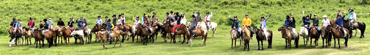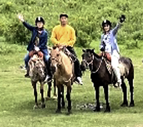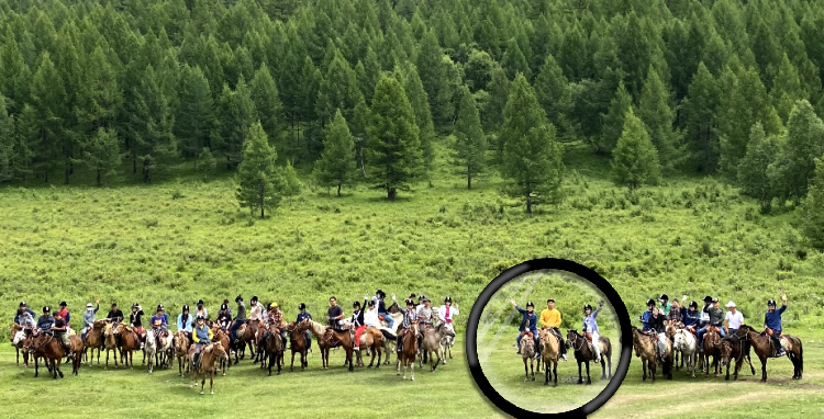 ▲ 좌측 앞에서 뒤 동그라미속 얼굴이 필자. 동양일보 문화계획단 주최로 마련된 여름 해외테마탐사로 몽골에 다녀왔다. 바람과 별, 끝없는 초원의 나라 '몽골' 힐링과 별밤투어, 그리고 몽골여행중 1시간 말을 타고 일행 전원이 무리지어 초원을 달리던 그 광경은 기막힌 장관이자 대단히 드라마틱한 풍경이었다. 어쩜 그리도 멋진 풍경인지...