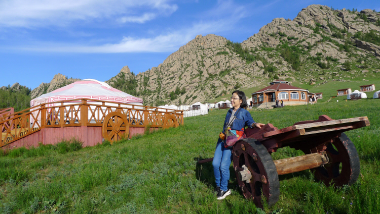 ▲ 몽골 테를지 국립공원 내에 둥지 튼 게르촌 앞 초원에서