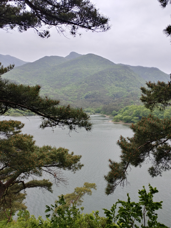 망세루에서 바라본 괴산호와 멀리 괴산댐