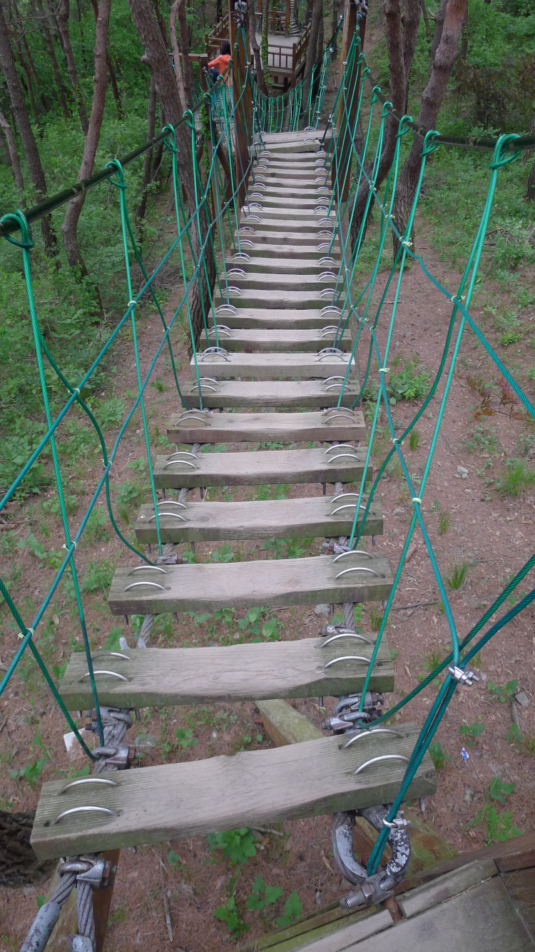 소나무동산에 소나무와 소나무를 연결하여 길다란 출렁다리를 만들어