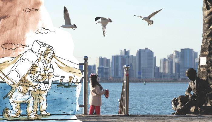 원주민 희생이라는 슬픈 역사도 서려 있다. 담군(왼쪽 삽화) 등 부두 노동자들이 당한